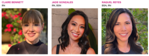 Our expert Aesthetic RNs Claire, Jade, and Raquel are available Monday–Friday.